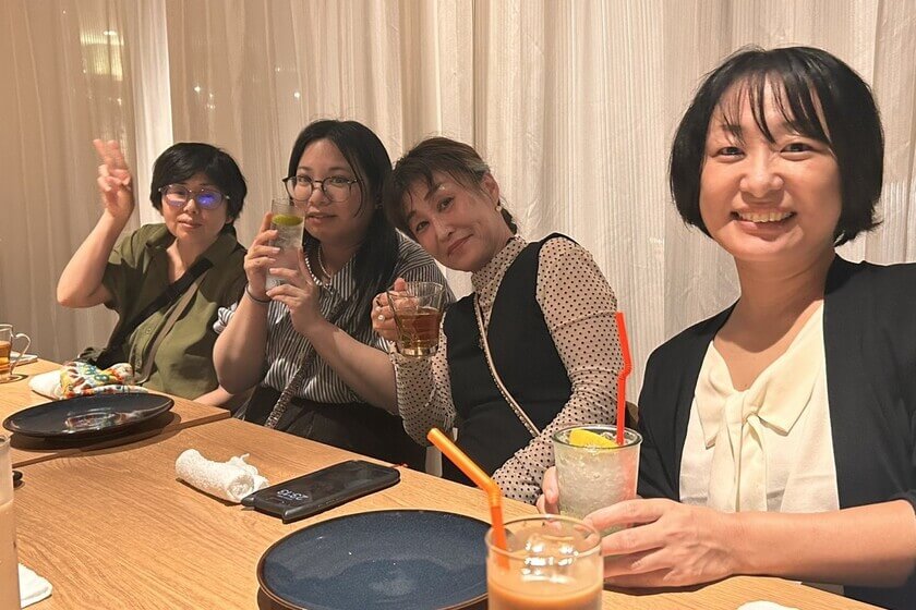 おいしいごはんとおいしいお酒を囲みながら、仕事のこと、プライベートのこと、みんなでたくさんおしゃべりしました!